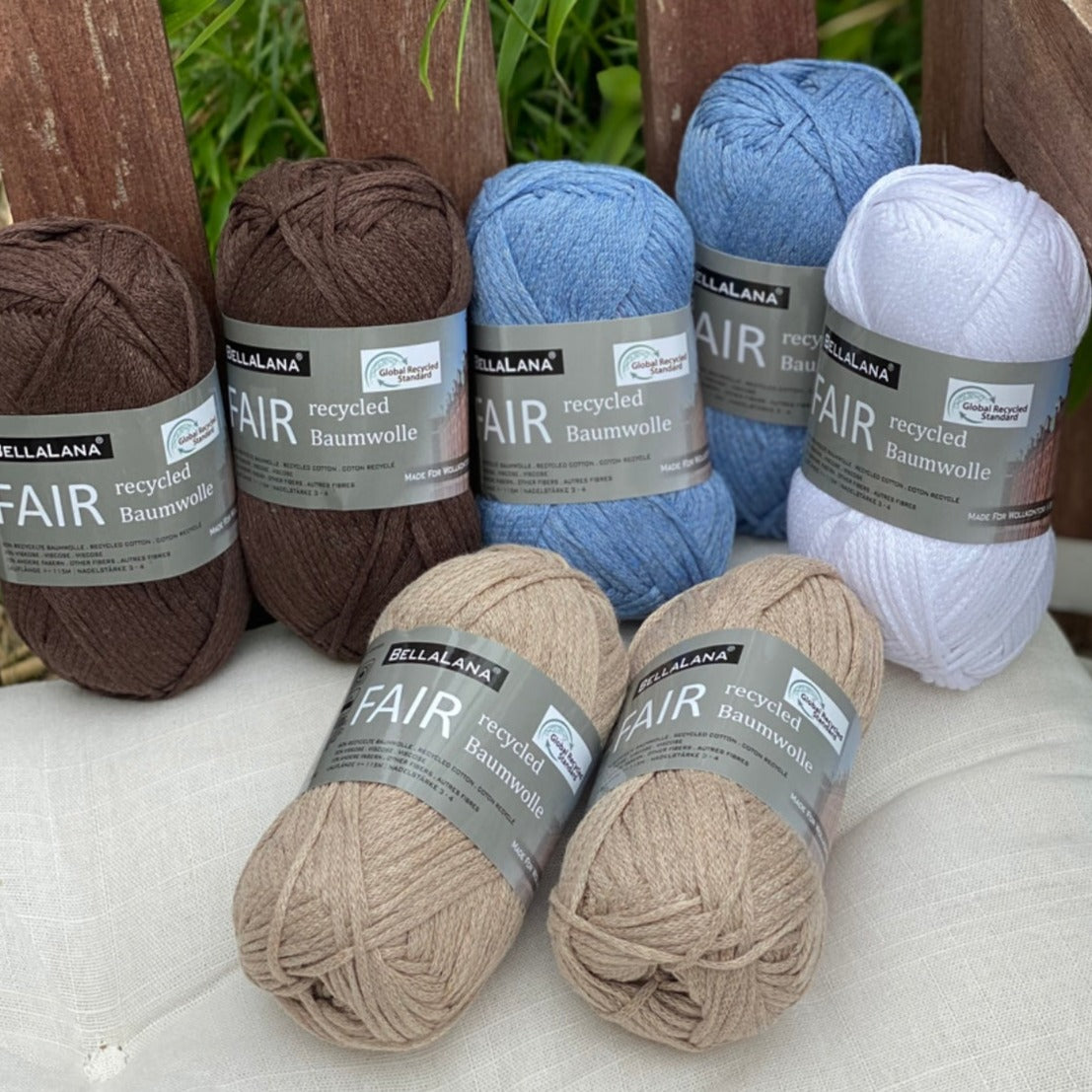 Unsere FAIR recycled Baumwolle ist ein nachhaltiges Garn, welches aus recycelter Baumwolle gefertigt ist. Die Baumwolle wird aus Resten der Textilproduktion gewonnen und verleiht dem Garn einen soften Flausch. Unterstützen Sie unsere Umwelt auch mit nur kleinen Schritten und überzeugen mit Accessoires bis hin zur Oberbekleidung aus recyceltem Material.