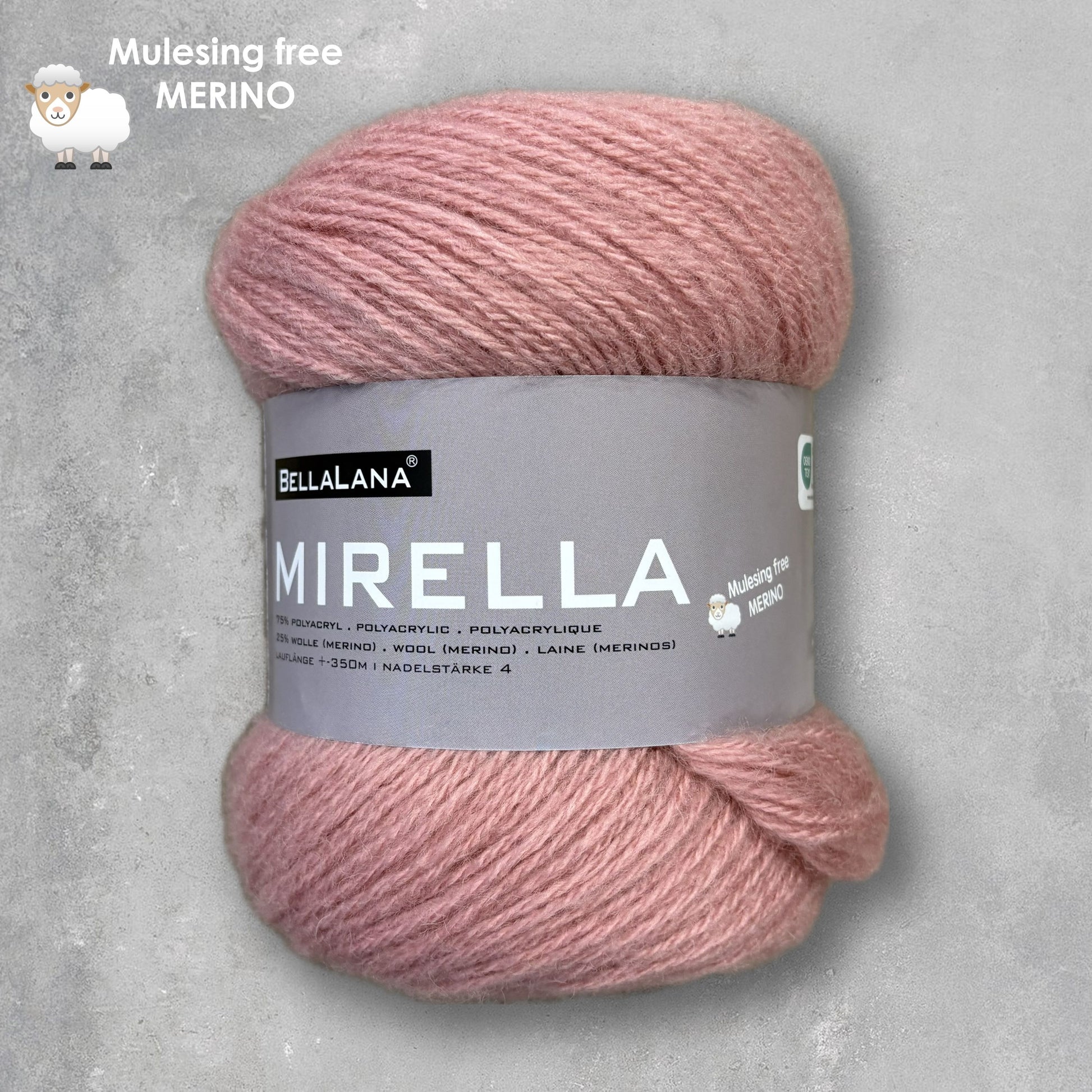Gut zu wissen: Die in Mirella verwendete MERINO-Wolle stammt aus garantiert mulesingfreier Tierhaltung – für ein gutes Gefühl beim Stricken und Tragen.
