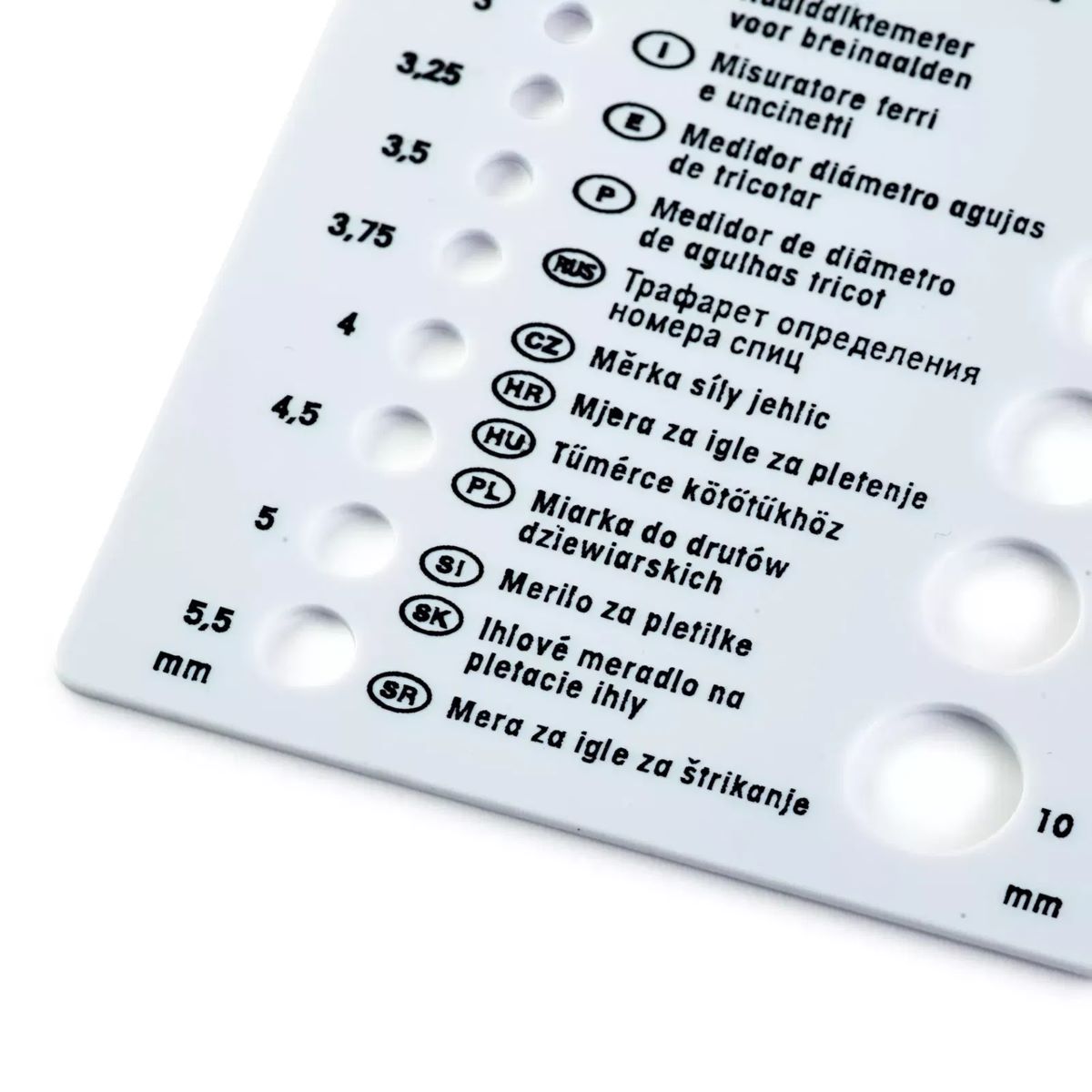 Wer häufig und gerne strickt, hat ein großes Sortiment an Stricknadeln in den verschiedensten Größen und Stärken. Und wie oft findet man vereinzelte Stricknadeln beim Aufräumen und Sortieren der Wolle? Hier ist das Nadelmaß von Prym ein praktischer Helfer bei der Bestimmung der Stricknadelstärke. Die handliche Karte aus robustem weißem Kunststoff verfügt über 19 Löcher mit den gängigen Durchmessern aller handelsüblichen Stricknadeln zwischen 2 mm und 10 mm. So lässt sich mit dem praktischen Strickzubehör von Prym jede Stricknadelstärke präzise bestimmen.