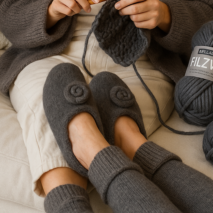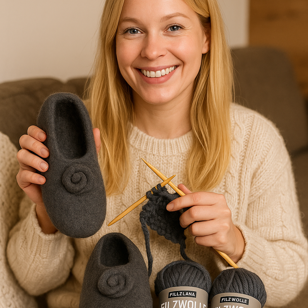Strick-Set FILZWOLLE kuschelige Hausschuhe (inkl. Strick- & Filzanleitung)
